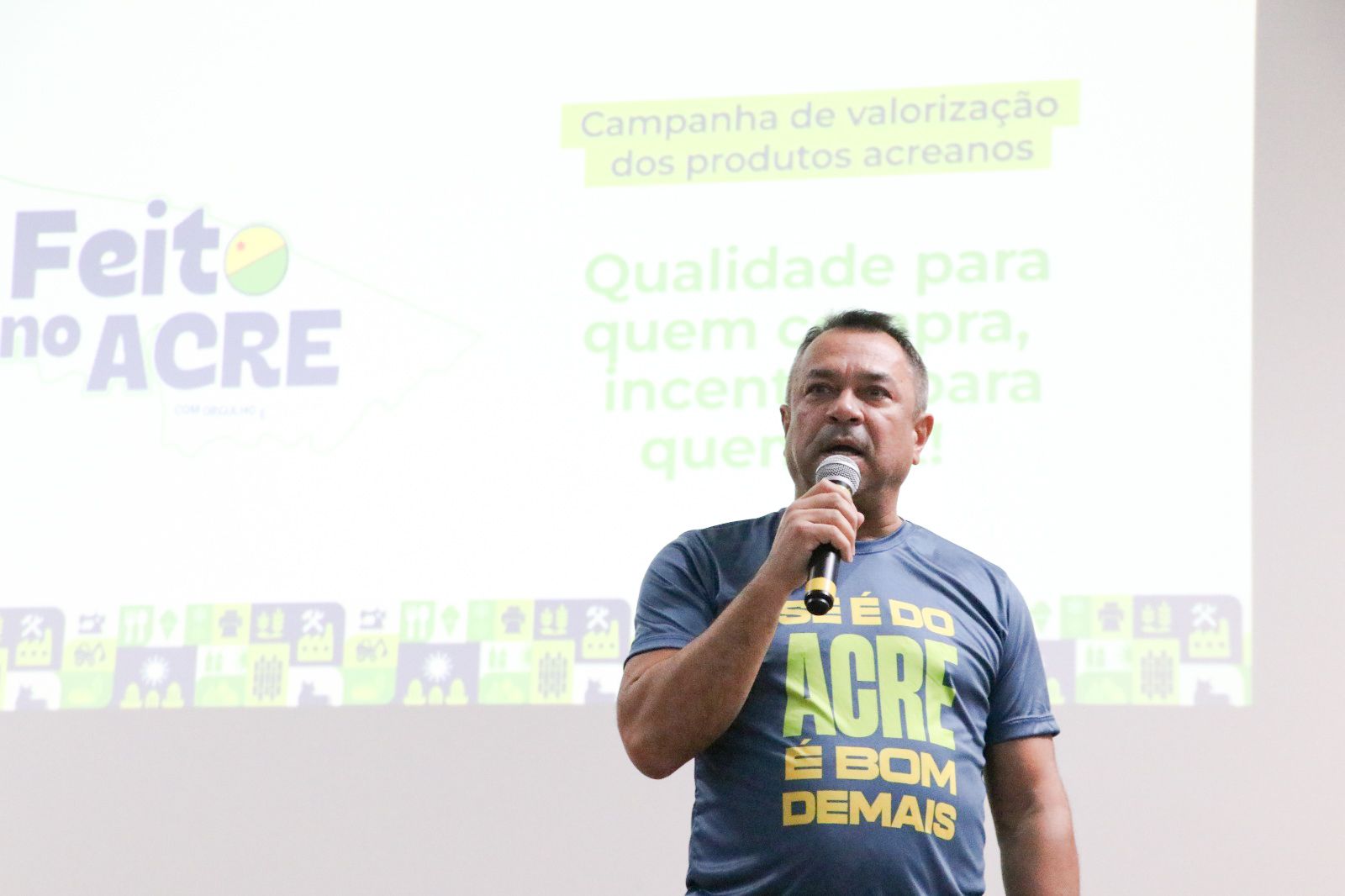 O público também conferiu uma exposição de produtos locais no hall do auditório, reforçando a diversidade e qualidade da produção acreana. Durante o evento, foi apresentado o novo selo “Feito no Acre”, que identificará oficialmente os produtos fabricados no estado.